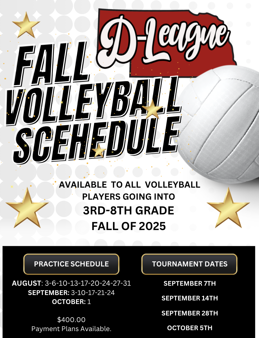 Join us for 9 skills sessions ran by Coach Kiara Krusemark. This is open to all 5th-6th-7th and 8th grade athletes participating in our Fall volleyball program. These practices will be held back-to-back with their team practices. They are an additional opportunity but are not required for the fall program.