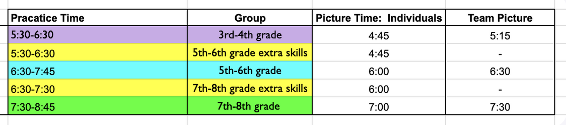 Picture Day is coming up on Wednesday, August 27th! Below is the schedule for both individual and team photos.